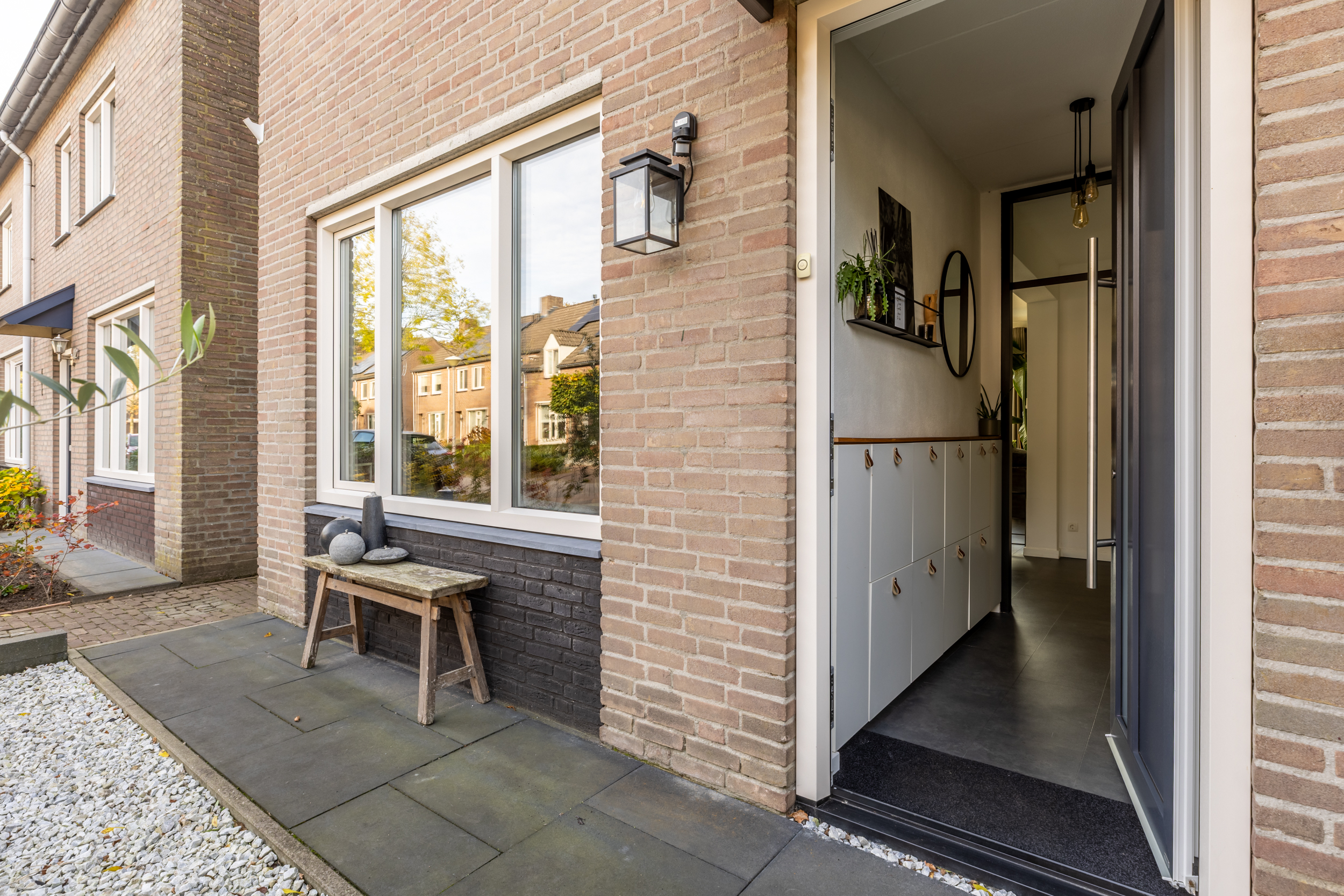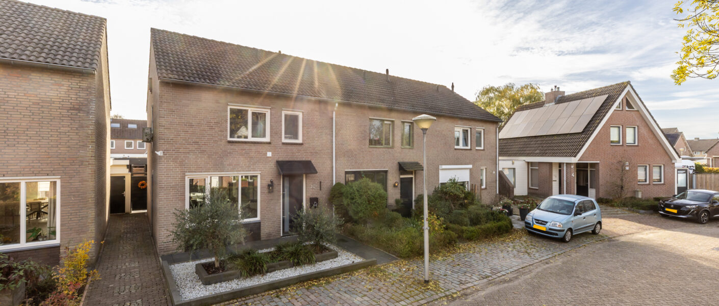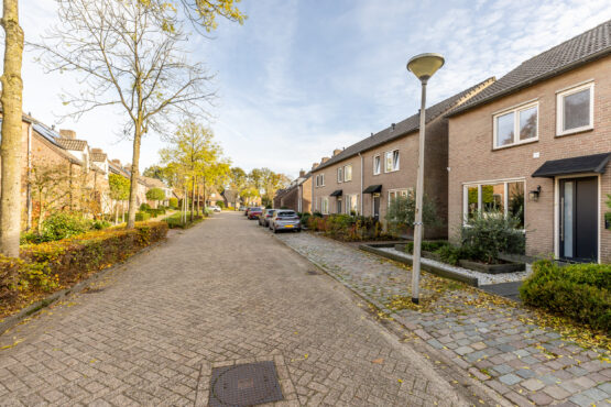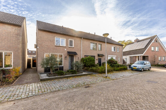 We rijden de Calluna in en parkeren onze auto in een van de parkeervakken. De Calluna is mooi centraal gelegen, in een kindvriendelijke wijk, vlakbij de centrumvoorzieningen van Middelbeers. Kijkend naar de voorzijde van het huis valt als eerste de verzorgde en onderhoudsarme voortuin op. Ook zien we direct naast het huis een gangpad. Het huis zelf blijkt geheel voorzien te zijn van kunststof kozijnen. Dat is natuurlijk top. Energiezuinig en geen schilderwerk, daar houden we van!