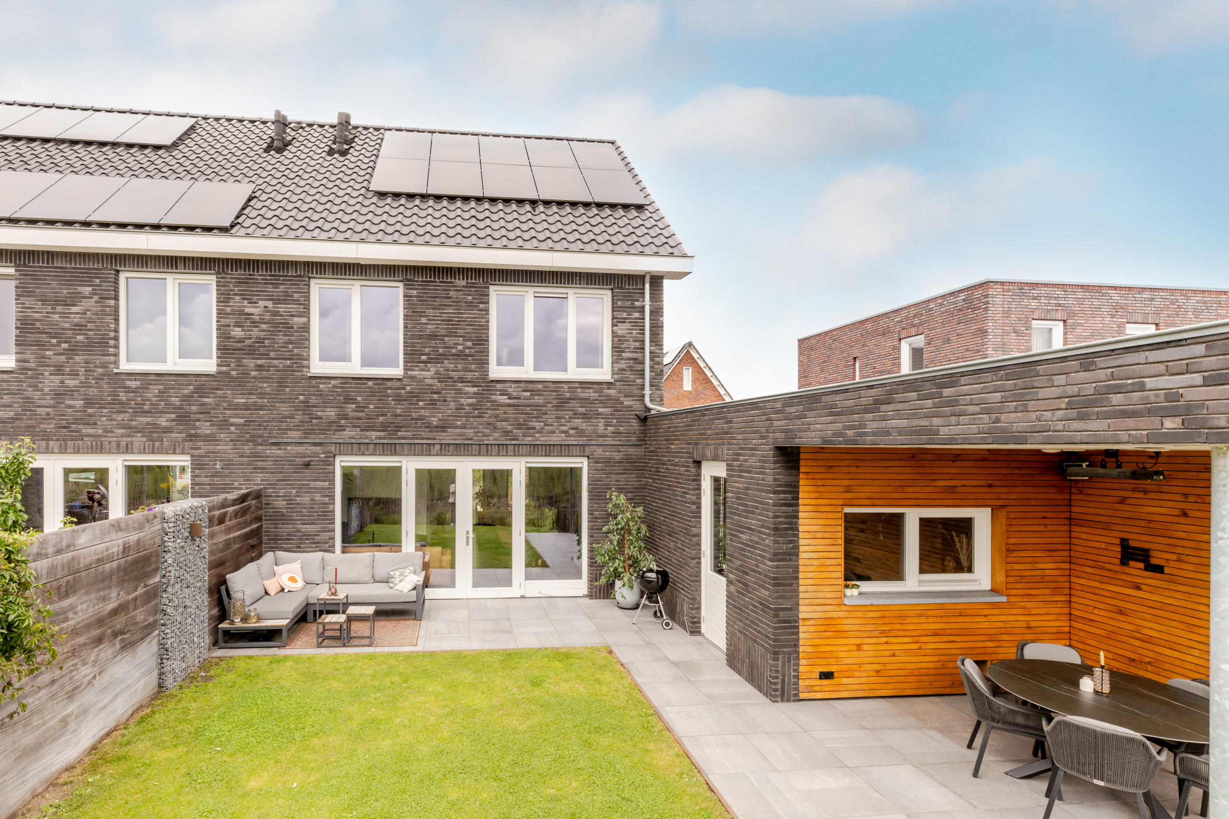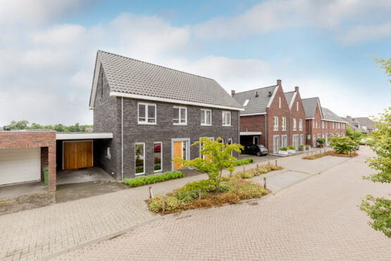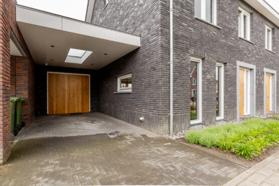 Het huis is rustig gelegen aan de rand van een nieuwbouwwijk in Middelbeers. In de directe nabijheid zijn rijwoningen gebouwd in een aantrekkelijke architectuur. Links naast de woning zien we een rijtje met bungalows. Het huis is opgenomen in een blok van 2 dat eruit springt door de donkere bakstenen met lichte kozijnen. Leuk detail is de voordeur, in een lichte houtafwerking, die omkaderd is door een rand van Belgisch hardsteen. Mooi passend bij de onderdorpels van de meeste kozijnen, die van ditzelfde fraaie materiaal gemaakt zijn. De voortuin ziet er verzorgd en onderhoudsarm uit en links van het huis zien we de oprit met carport. Aantrekkelijke architectuur, mooie ligging, carport, oprit ……. dat zijn al de 1e vakjes die we op ons wensen-lijstje kunnen afvinken! Een energiezuinig huis staat ook hoog op de lijst. Dit huis is opgeleverd in 2018, goed geïsoleerd incl. HR++ beglazing, voorzien van een energielabel A en ook nog 10 zonnepanelen. Check!