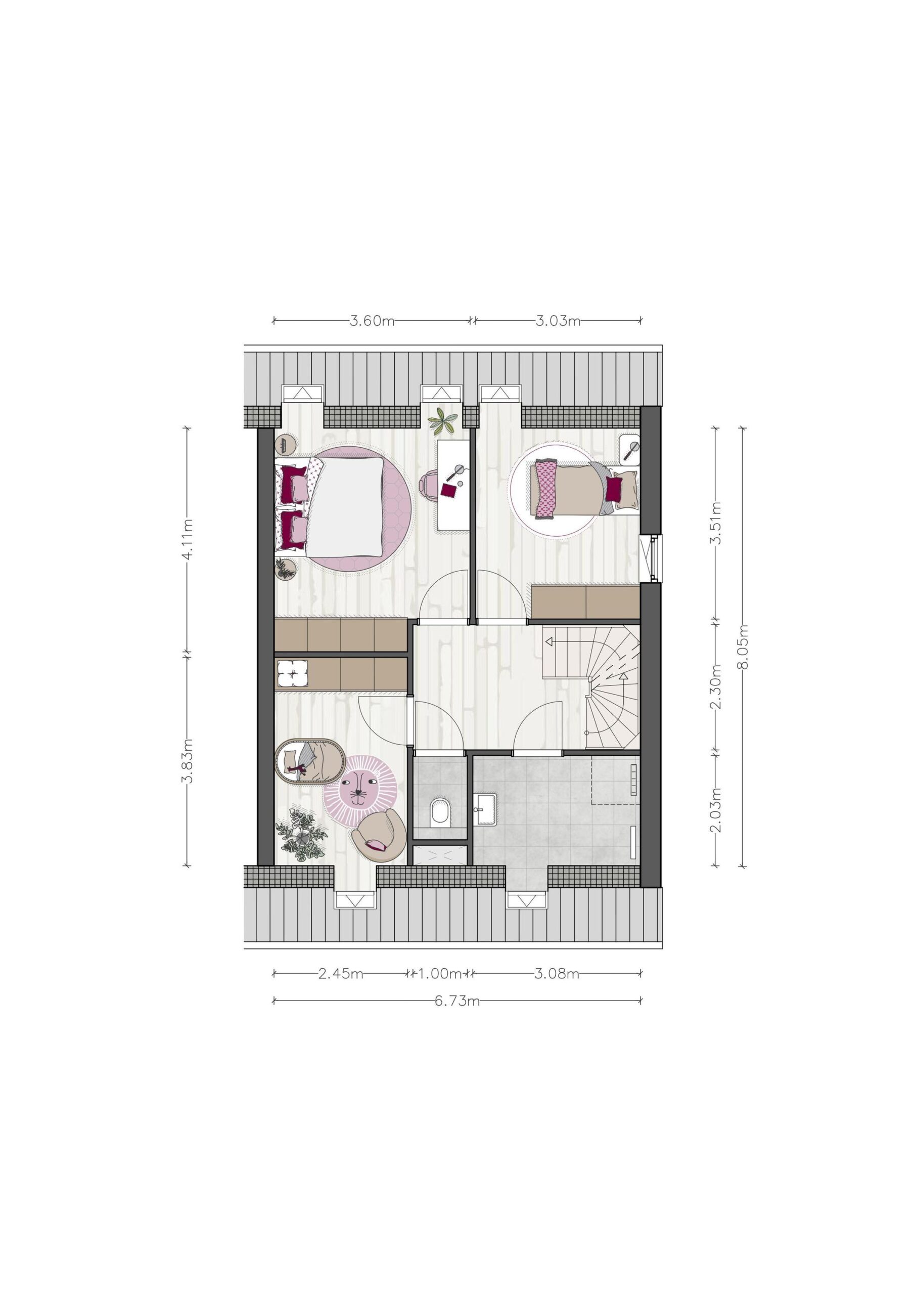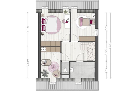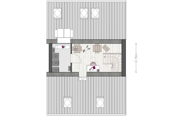 In de hoekwoningen maak je jouw entree via de zijgevel. Met een heerlijke woonkamer aan de voorzijde van de woning, en een ruime keuken aan de achterzijde van de woning met zicht op de tuin, heb jij alle ruimte om van deze woning jou thuis te maken. Op de eerste verdieping zijn 3 slaapkamers, een badkamer en een gescheiden toilet. Een vaste trap brengt je naar de zolder, waar de techniekruimte zich bevindt, ook is hier voldoende ruimte om bijvoorbeeld een werkplek te creëren.