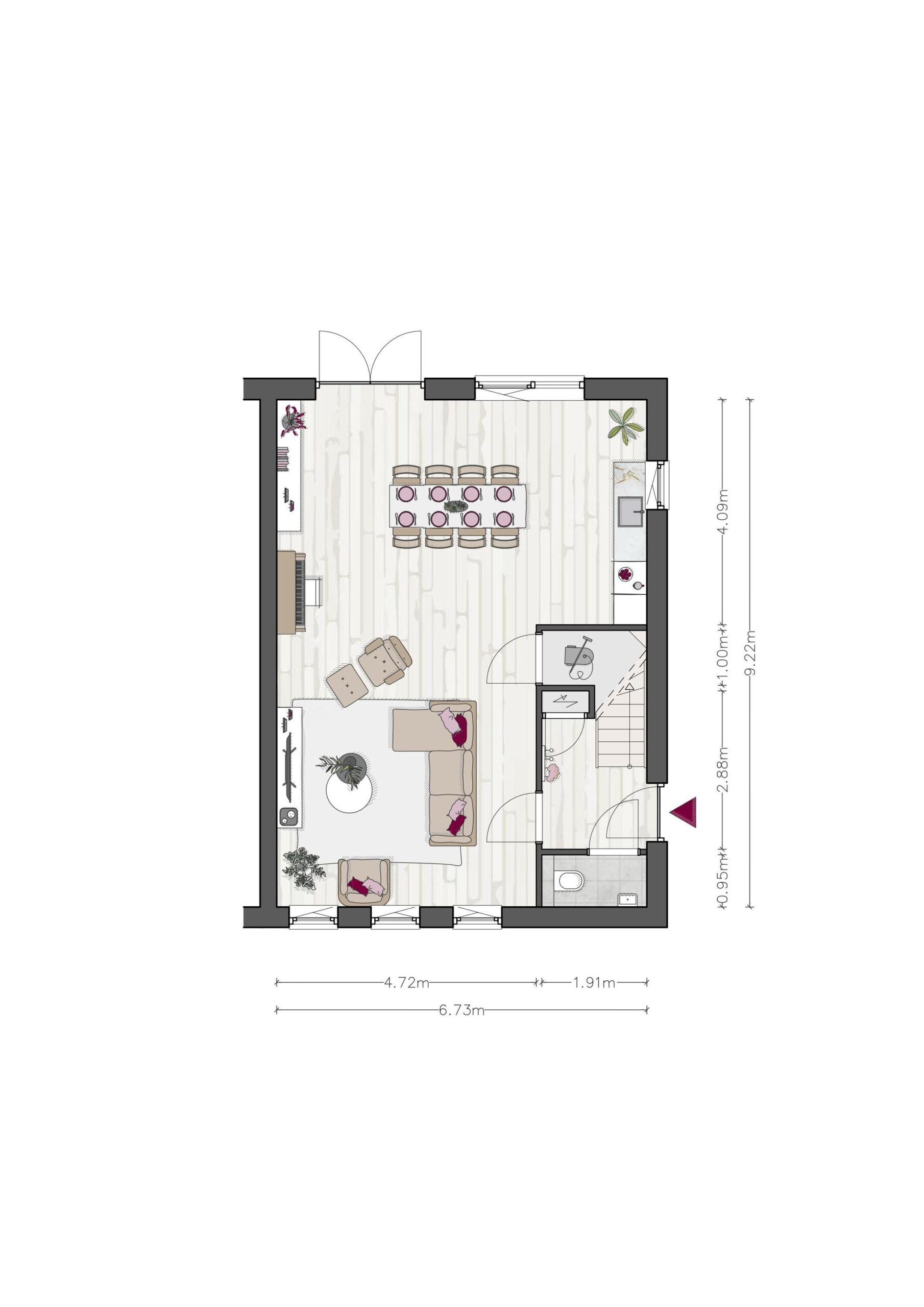 > locatie keuken en woonkamer omwisselen
