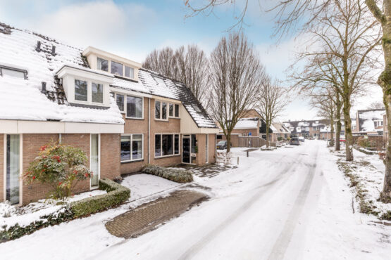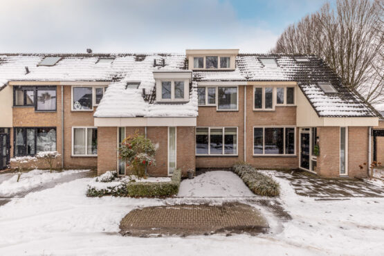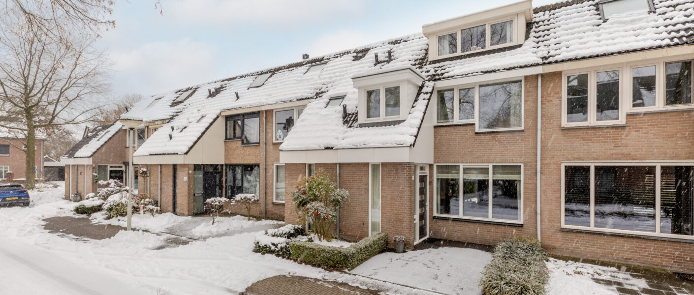 We parkeren onze auto voor het huis, stappen en uit en bekijken eerst de voorzijde van het huis. Op de dag van ons bezoek sneeuwt het en is er inmiddels een flinke sneeuwlaag gevormd op en voor het huis. We kunnen nog wel zien dat de voortuin er erg verzorgd en onderhoudsarm uitziet met straatwerk en een tweetal plantvakken. Het buitenschilderwerk ziet er keurig uit. Dit type huizen staan er velen in dit gedeelte van de wijk, echter valt ons meteen op dat dit huis 2 dakkapellen heeft aan de voorzijde, wat we nog niet eerder gezien hebben. Dat maakt ons nieuwsgierig naar wat het effect van deze toevoegingen is aan het huis. Laten we dan ook snel binnen gaan kijken!