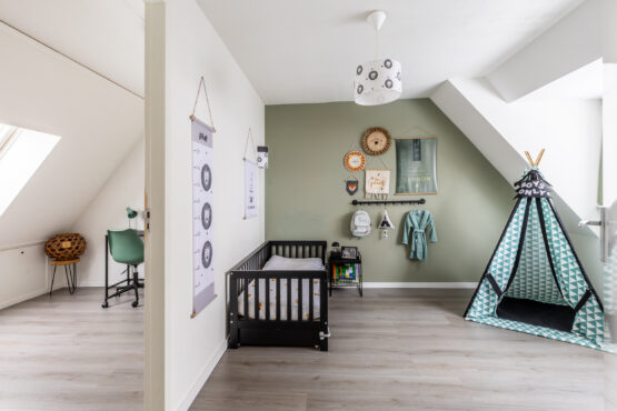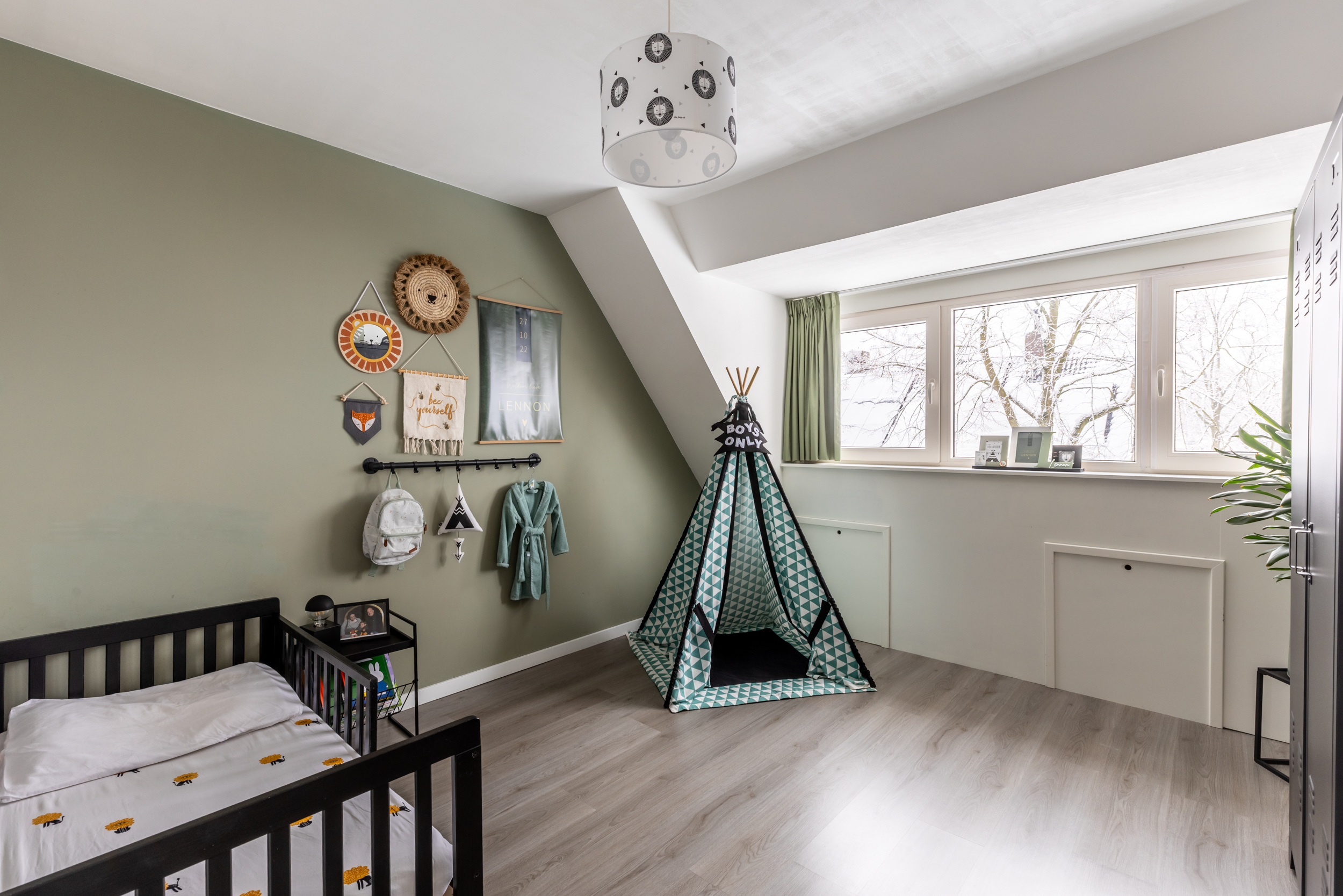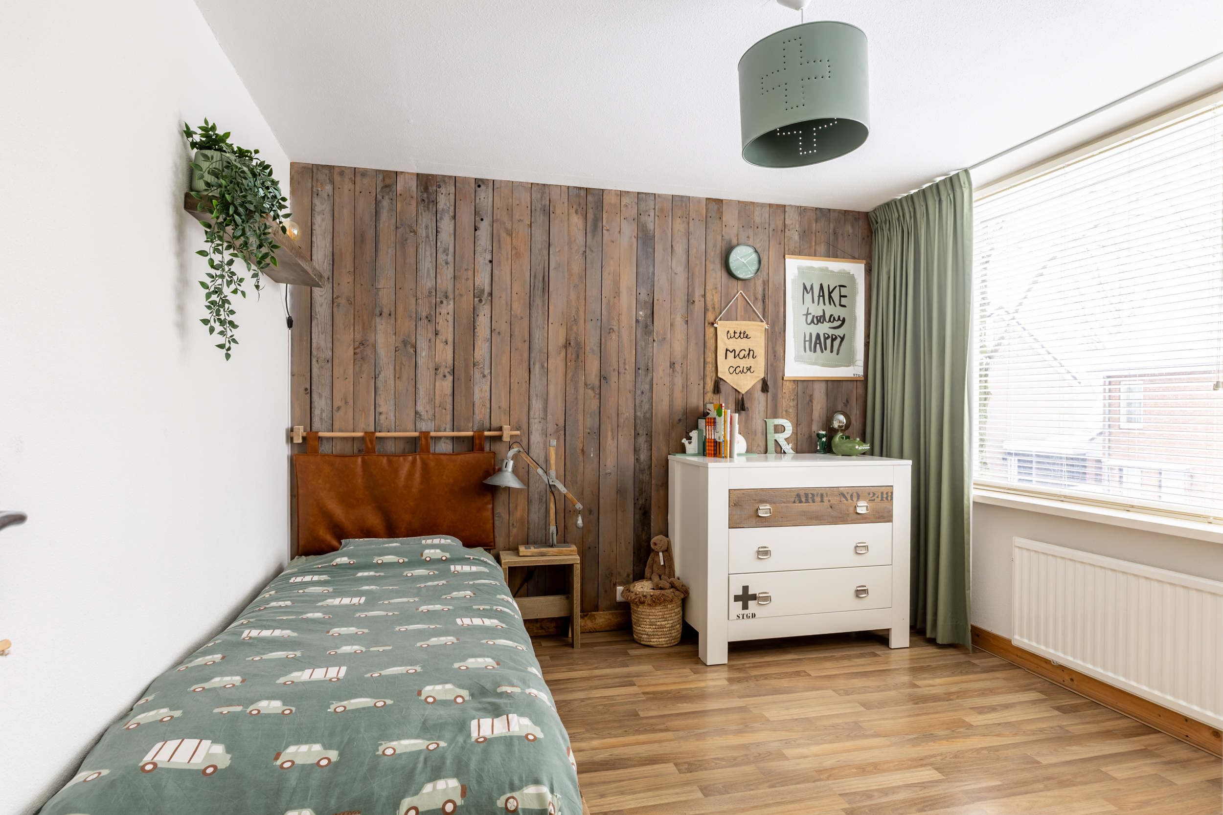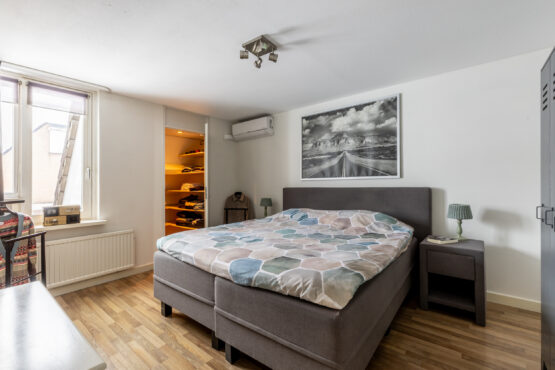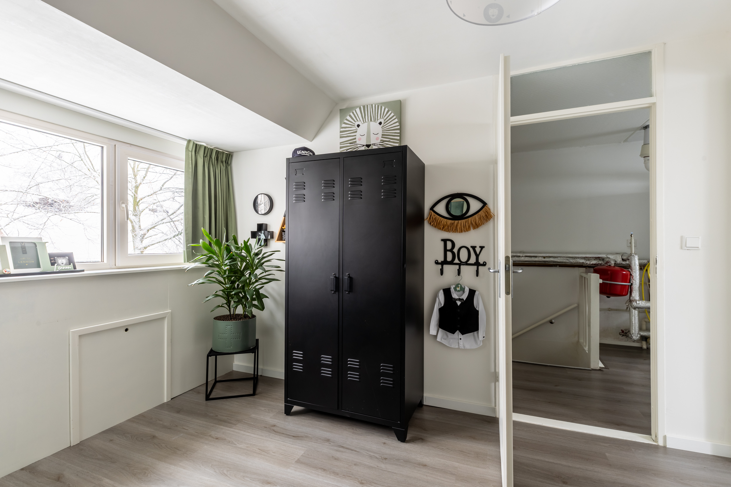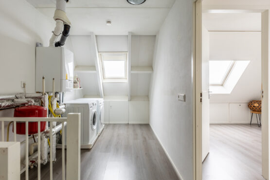 Met een vaste trap gaan we naar de 2e verdieping. 1e stop is een grote voorzolder met de HR-combiketel (2023) en de aansluitingen voor de wasapparatuur. Onder de kapschuinte is extra bergruimte. De oorspronkelijke slaapkamer is in het verleden opgedeeld in 2 slaapkamers, waardoor er nu maar liefst 5 slaapkamers aanwezig zijn! De slaapkamer aan de achterzijde heeft een groot dakraam, aan de voorzijde een grote dakkapel met aluminium kozijnen.
