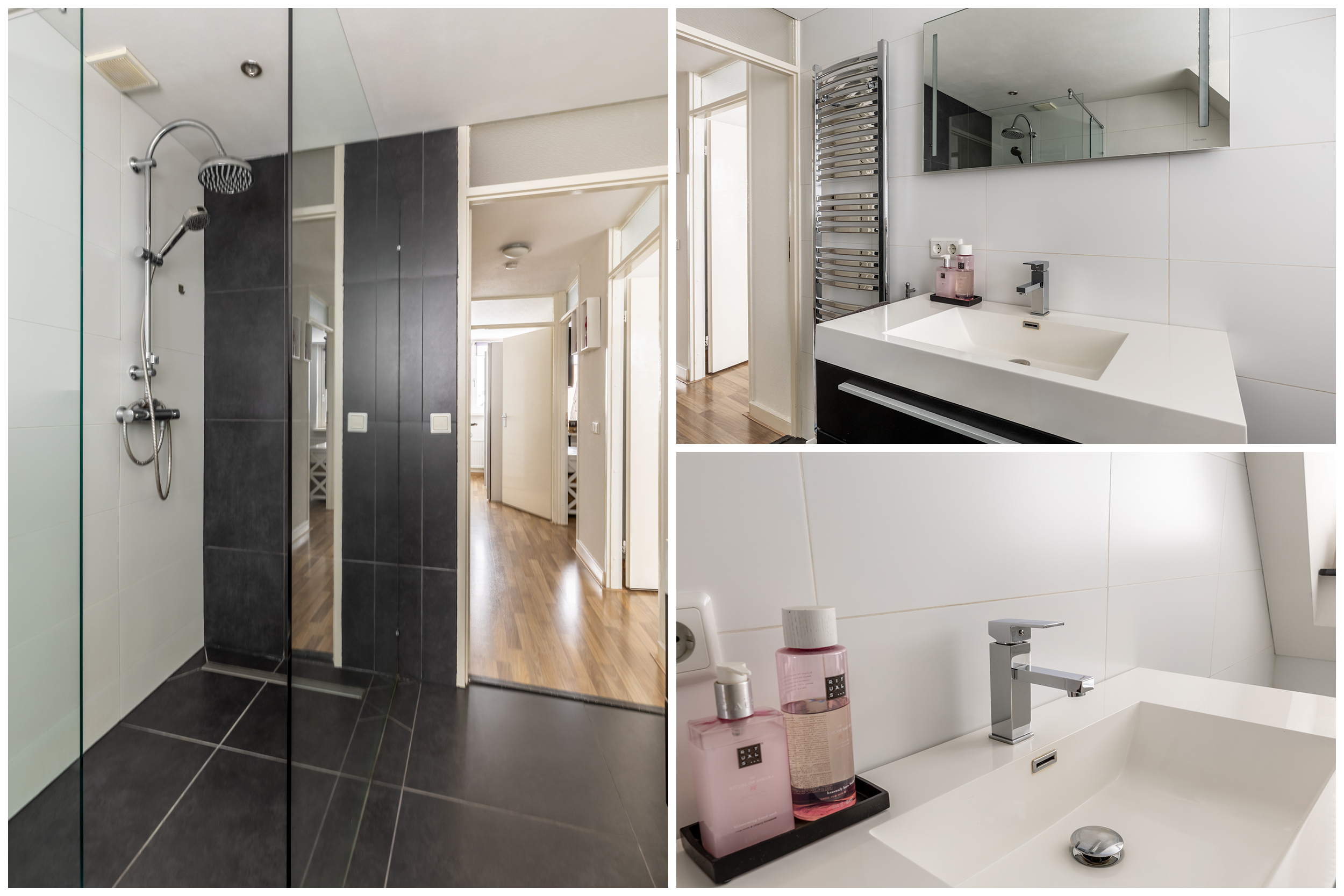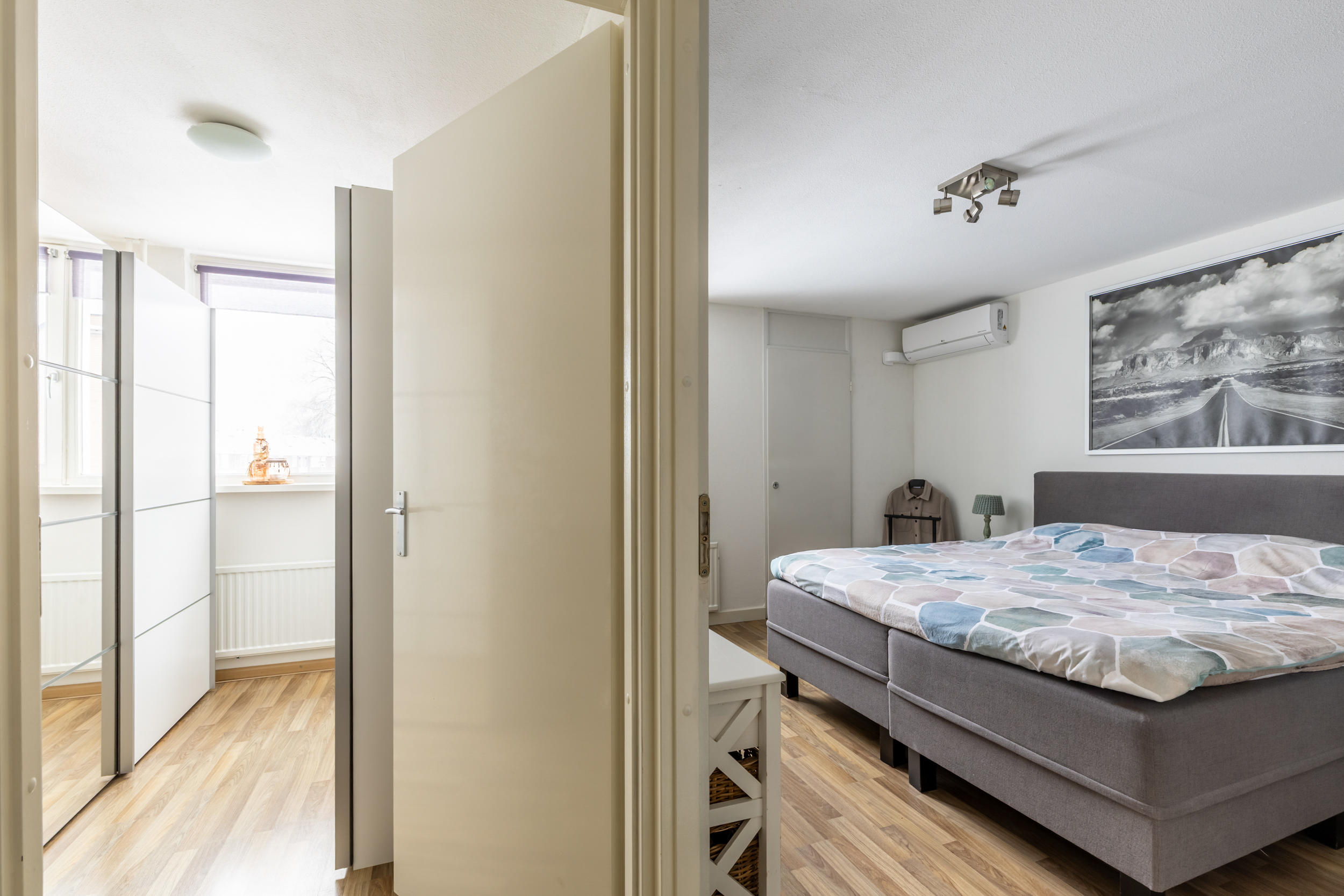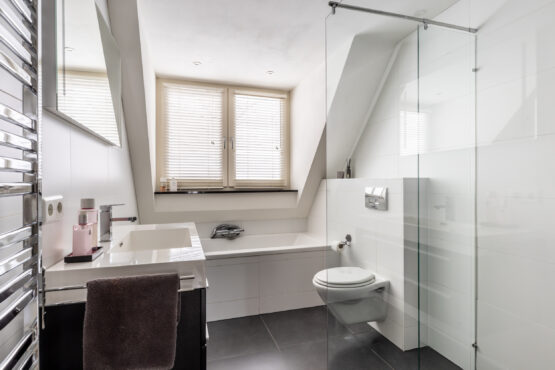 Op de 1e verdieping zijn er 3 slaapkamers en de badkamer. De grote slaapkamer aan de achterzijde heeft een airco en een eigen inloopkast. De kleinste slaapkamer is nu in gebruik als kastenkamer, maar dit zou ook een prima slaapkamer of werkplek kunnen zijn. Aan de voorzijde is nog een ruime slaapkamer, waarbij één wand fraai is afgewerkt met verticale planken. De badkamer is compleet met inloopdouche, wastafel in een meubel, wc en een ligbad. De aangebrachte dakkapel zorgt voor veel extra ruimte en daglicht. Alle ramen op de 1e verdieping zijn voorzien van HR++ beglazing en vanaf de overloop is een vaste bergkast bereikbaar.