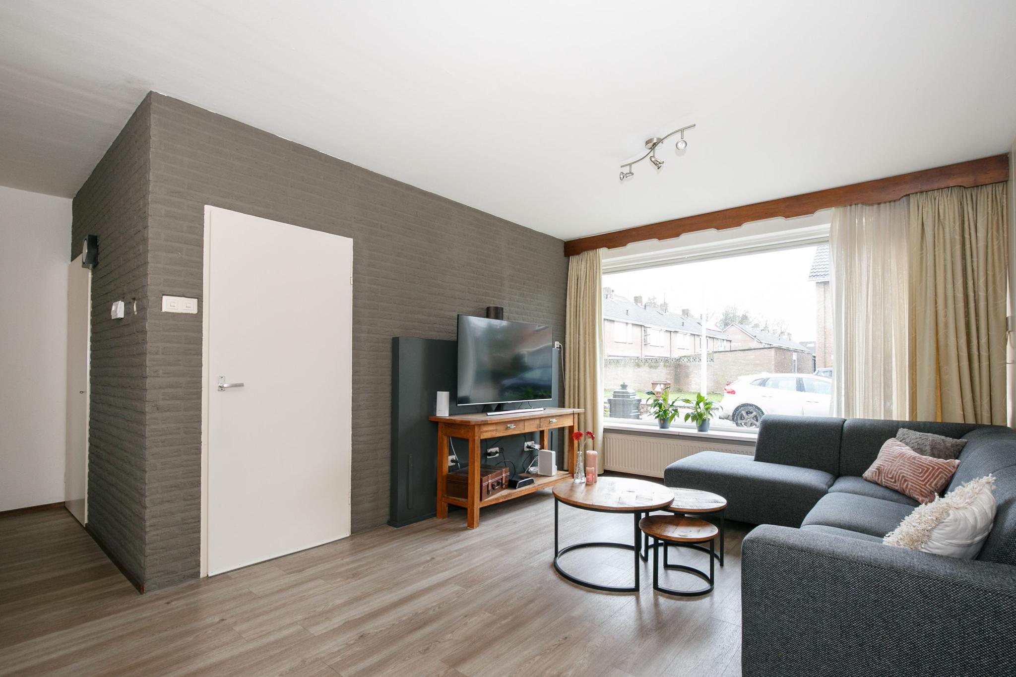 We betreden het huis via de voordeur en stappen in de hal. Aan onze rechterzijde is het toilet en een garderobenis. Het toilet is uitgevoerd met een hangtoilet en een fonteintje. De trap naar de 1e verdieping slaan we voor nu even over en we openen de deur naar de woonkamer. Deze ruime en lichte ruimte is aan de voorzijde van het huis. Op de vloer is laminaat aangebracht. We lopen naar achteren en zien dat aan de rechterzijde een trapkast is. Handig natuurlijk voor de stofzuiger en de proviand. Achterin is de eethoek. Door de vorm van de woonkamer is dit een apart gedeelte van de woonkamer wat zorgt voor extra sfeer. Vanuit de eethoek kunnen we een loopdeur nemen en komen dan direct onder de overkapping uit.