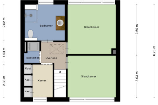 – mogelijkheid vaste trap te plaatsen naar de 2e verdieping