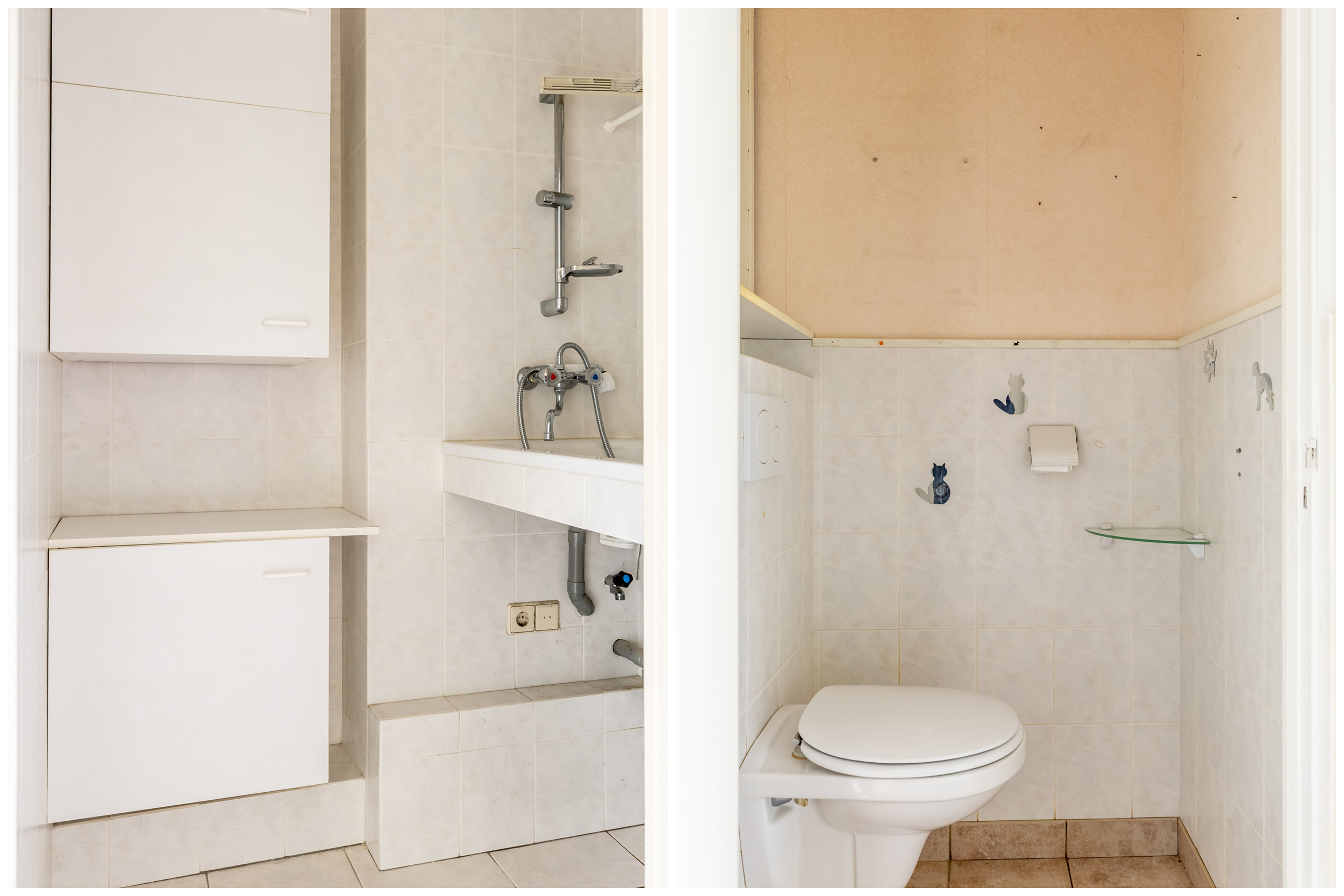 Nu we beneden hebben gezien, gaan we boven kijken. Via de trap gaan we naar de 1e verdieping. Geheel passend bij het huis, is ook de trapopgang voorzien van een houten lambrisering. Als we boven aankomen zien we dat ook hier alle vloerbedekking reeds is verwijderd, top! Rechts van ons is een grote slaapkamer, deze is aan de voorzijde van het huis. De 2e slaapkamer is aan de achterzijde en deze heeft ook een ruim formaat. De 3e slaapkamer is aan de voorzijde en hier is een kastenwand gemaakt, handig! Alle kozijnen op de 1e verdieping zijn al vervangen door kunststof kozijnen met HR++ glas. De oorspronkelijke badkamer is verbouwd tot waskamer en de 4e slaapkamer is omgebouwd naar badkamer. Heel fijn, zo is er al een ruime badkamer aanwezig. Deze heeft een hangcloset, design radiator, wastafel in een meubel en een douche met zitplateau. Met een vlizotrap kunnen we naar een grote bergzolder op stahoogte. Ideaal natuurlijk voor extra opslag, maar door het plaatsen van een vaste trap is hier uiteraard ook meer mogelijk! TIP: deze ruimte is niet meegeteld in het woonoppervlak, maar aangeduid als overige inpandige ruimte. Op de zolder hangt de HR-combiketel, een Intergas HRE uit ca. 2017.